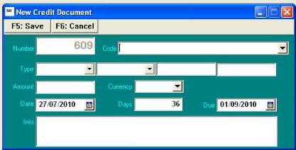 In DH Systems a Credit document relates to a non-diamond delivery of services or goods to an outside party. For example,