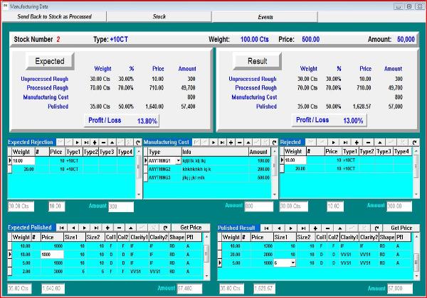 This last step dispatches the polished breakdown as well as the rejected rough back to stock. They will be registered as