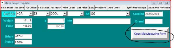 When the Update Form of the selected item is displayed on screen, click on the Open Manufacturing Form button. The