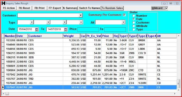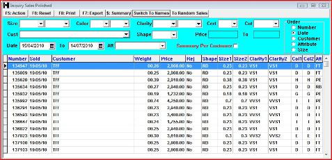 This form allows for sales selection according to the criteria as displayed on the upper part of the screen.